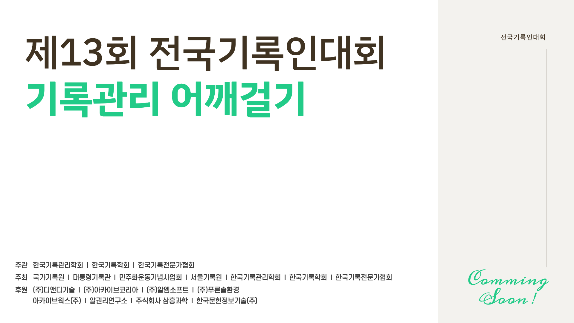 제13회 전국기록인대회가 10일 앞으로 다가왔습니다.