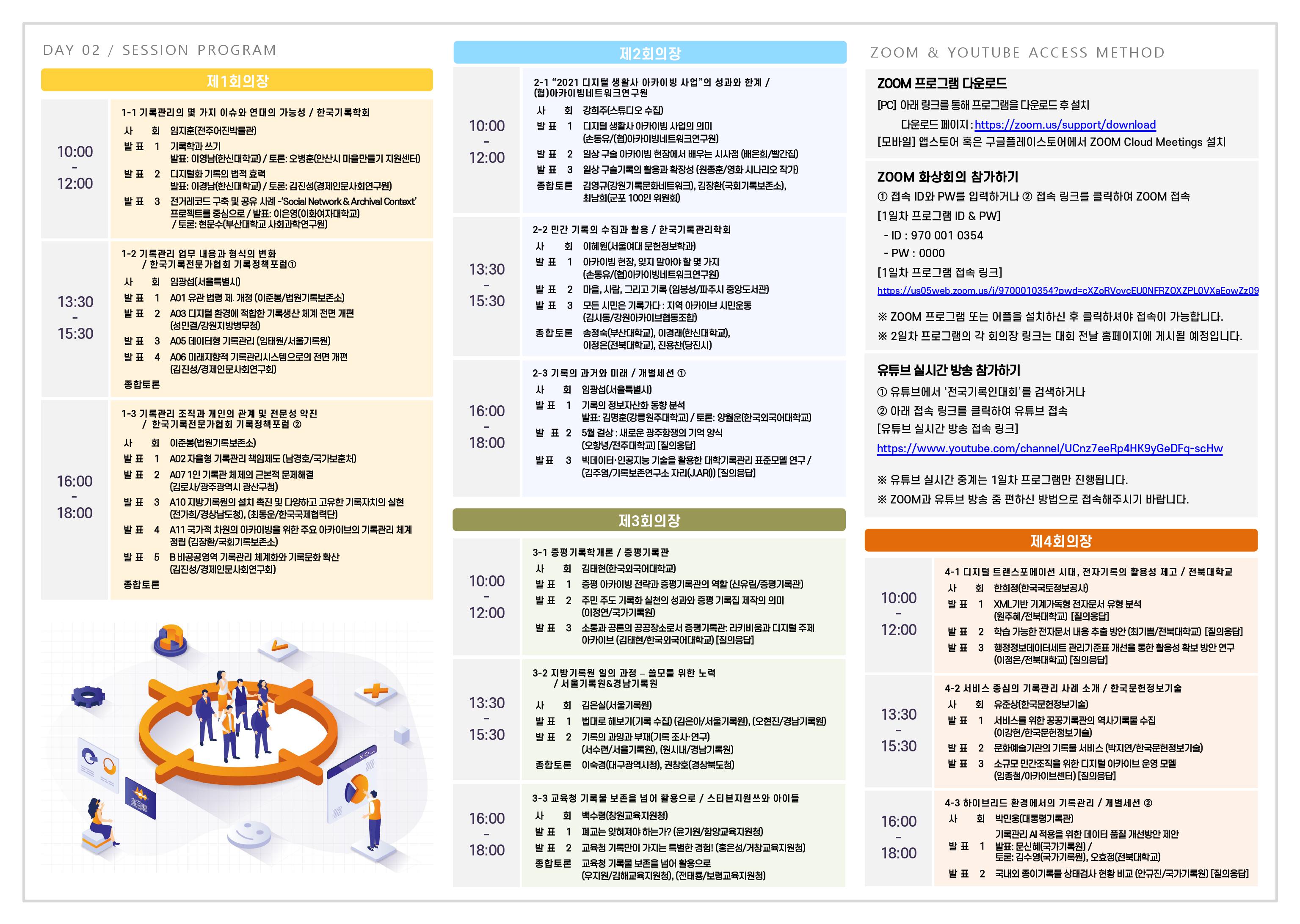 'ZOOM'과 '전국기록인대회 유튜브'에서 동시에 실시간 중계가 진행될 예정이오니 참고 부탁드립니다.