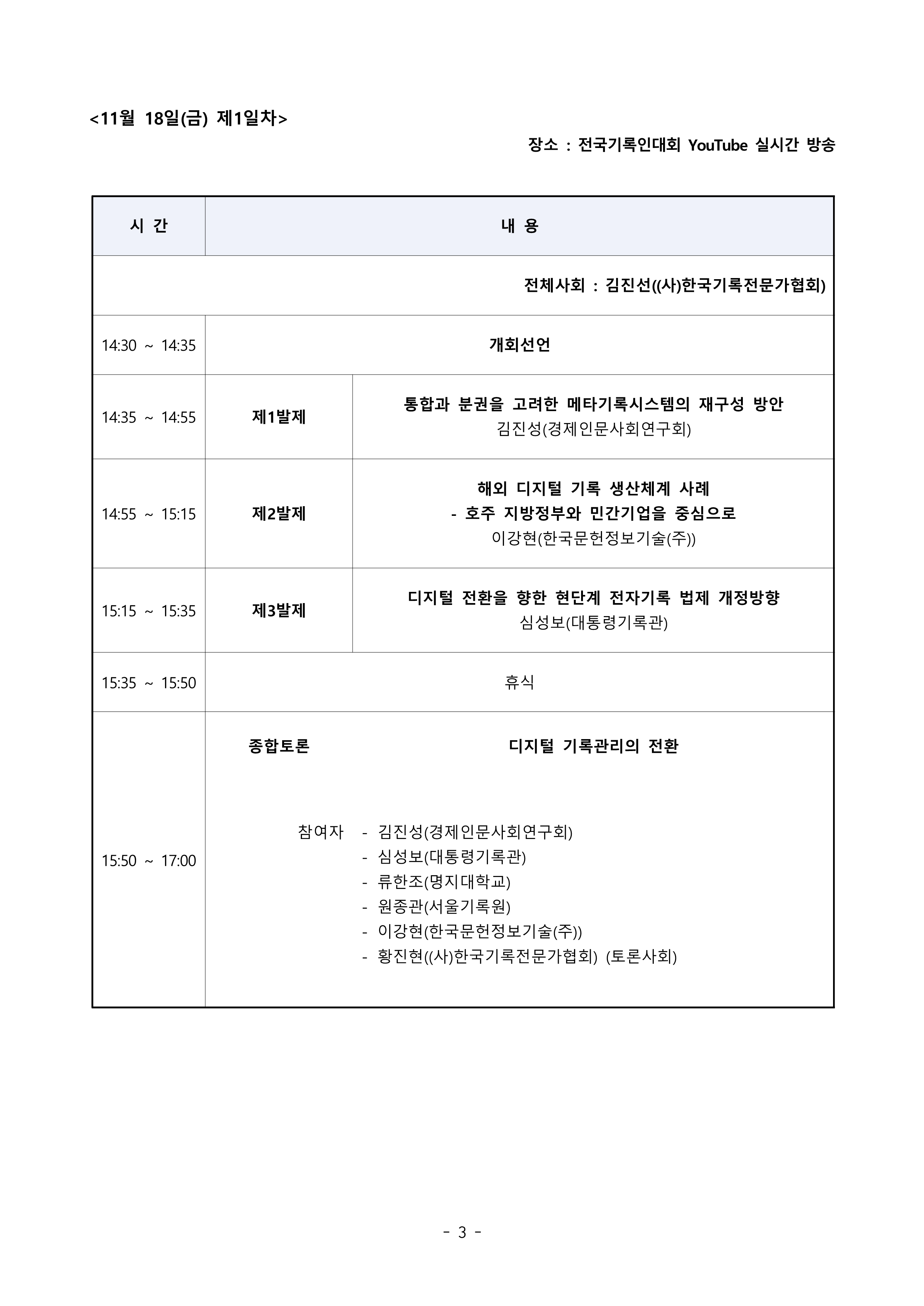 ■ 장 소 : [1일차] 전국기록인대회 YouTube 실시간 방송