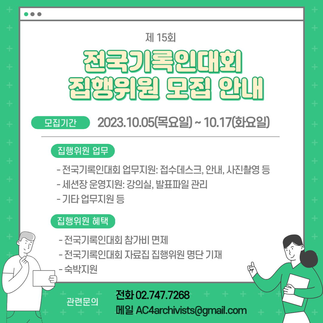 이에 제15회 전국기록인대회 현장에서 함께해주실 집행위원을 모집합니다.