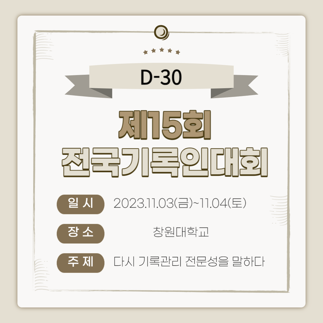 제15회 전국기록인대회가 약 한달 앞으로 다가왔습니다.