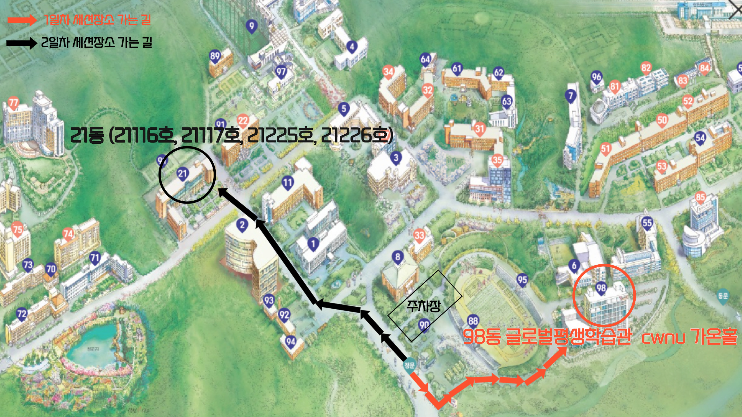 - 1일차 세션장소: 글로벌평생학습관(98호관) cwnu 가온홀