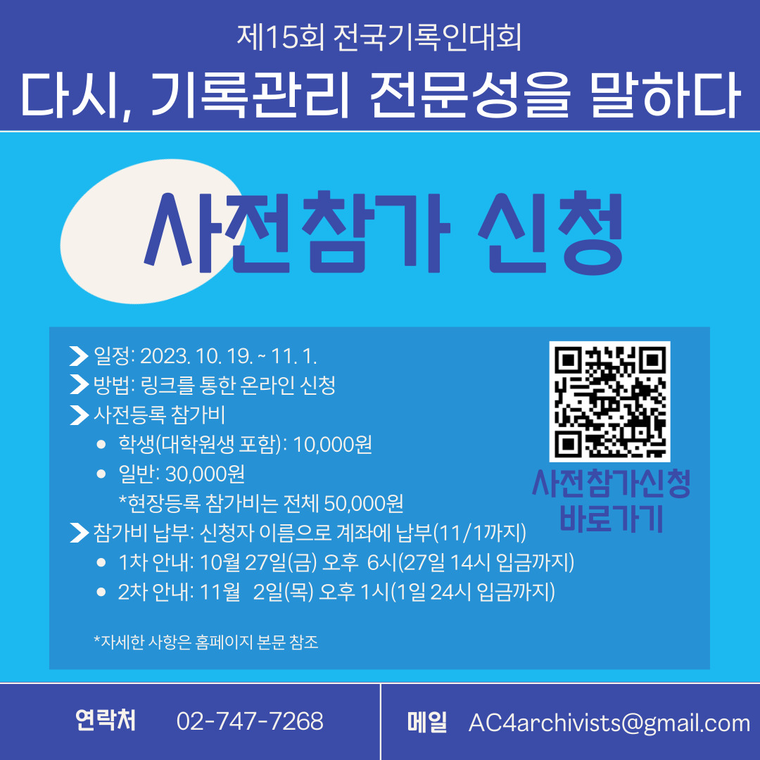 ▶️문의: 제15회 전국기록인대회 조직위원회 간사 김고운비