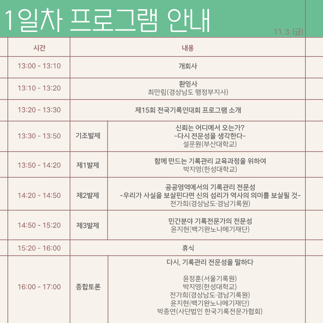 ▶️문의: 제15회 전국기록인대회 조직위원회 간사 김고운비