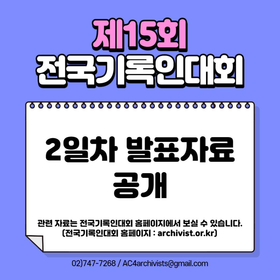 | [공지] 제15회 전국기록인대회 1일차 발표자료 추가공개 (0) | 2023.11.03 |