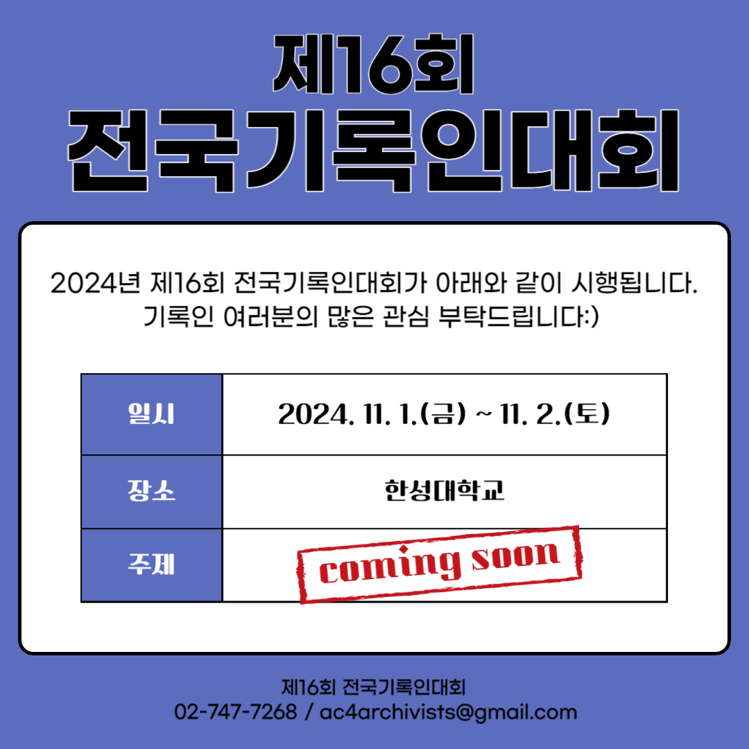 📞문의: 제16회 전국기록인대회 조직위원회 간사 김고운비