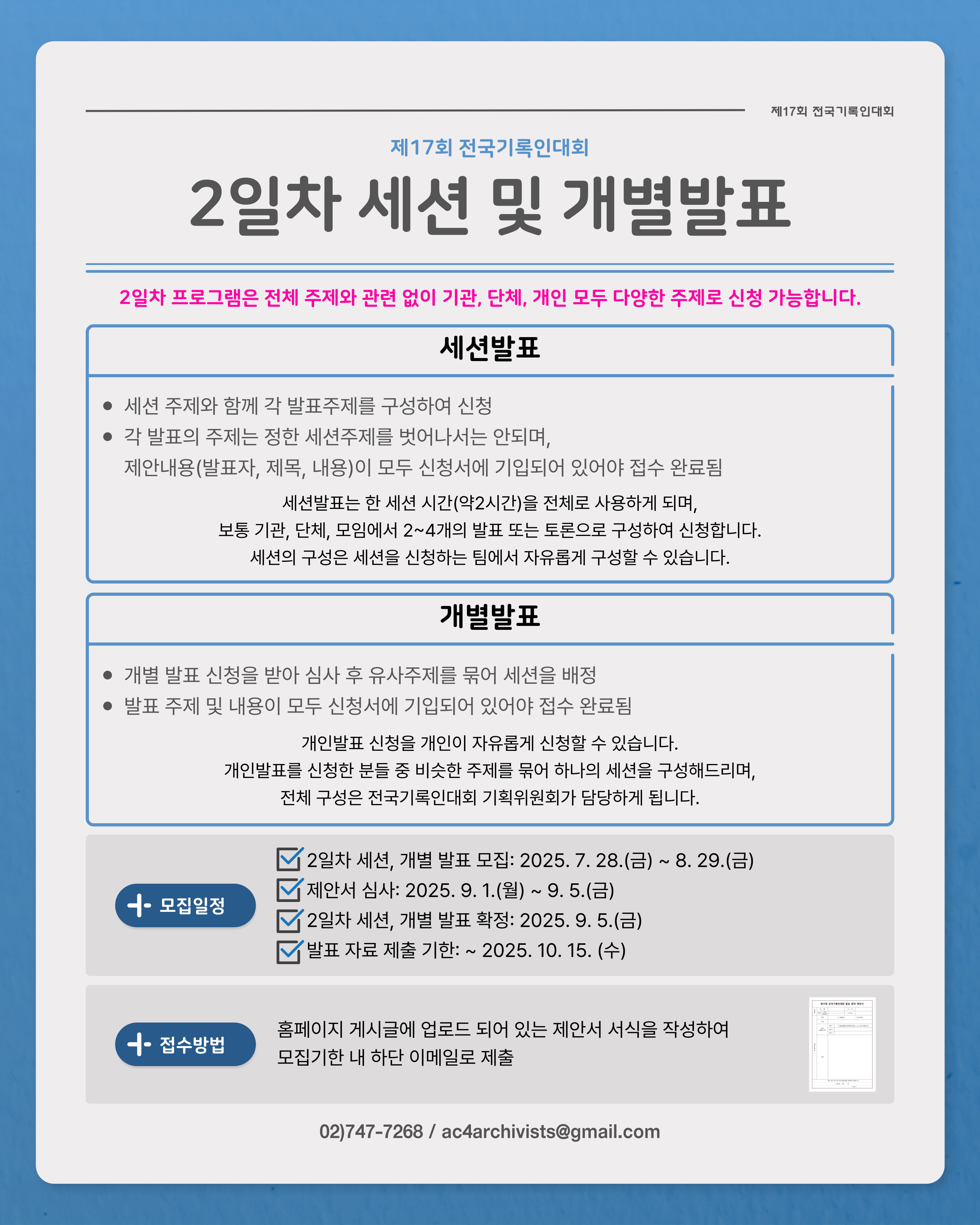 제17회 전국기록인대회 2일차 세션 및 개별발표 모집