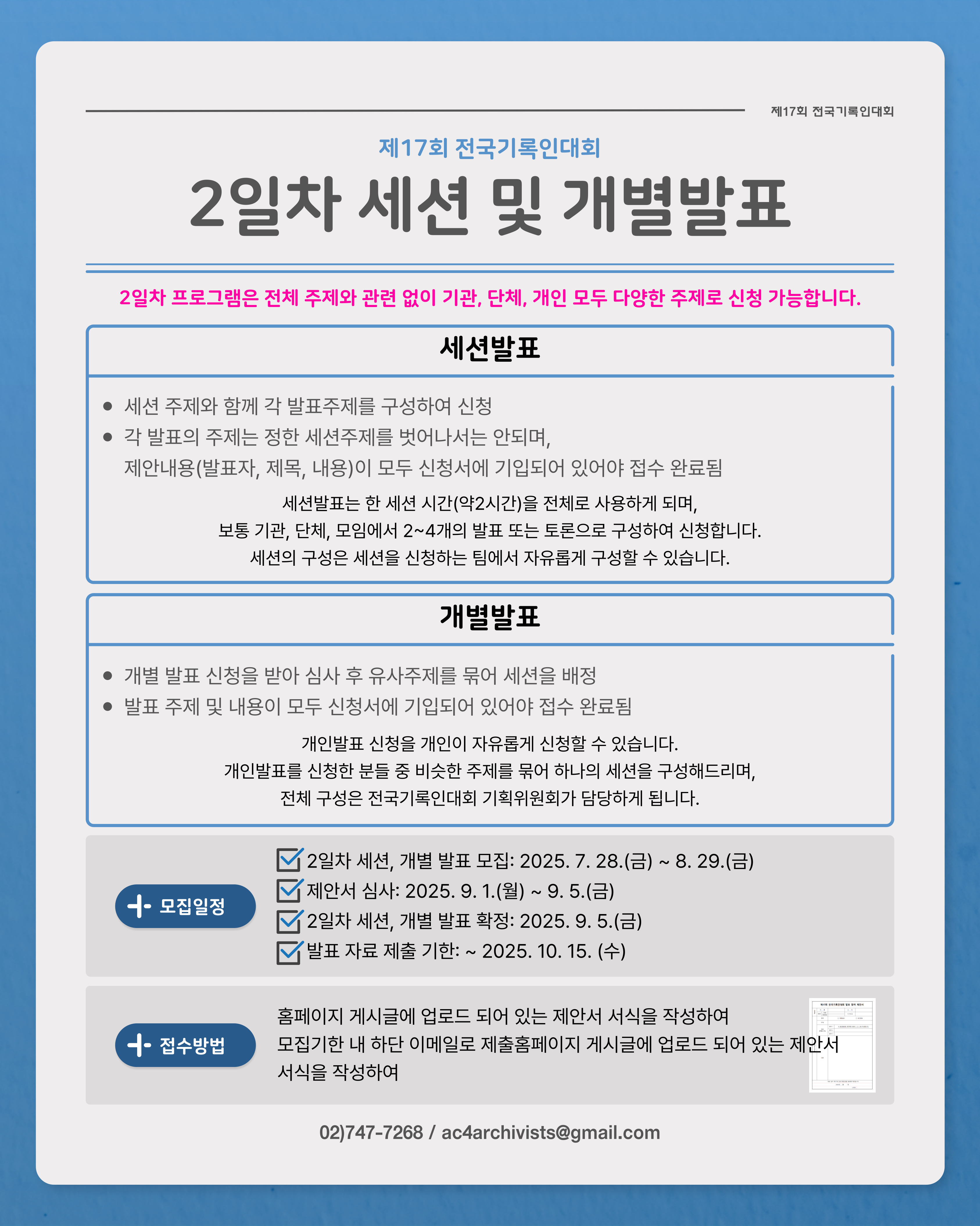[공지]제17회 전국기록인대회 2일차 세션·발표 및 기획세션 모집, 협찬기관 모집 안내