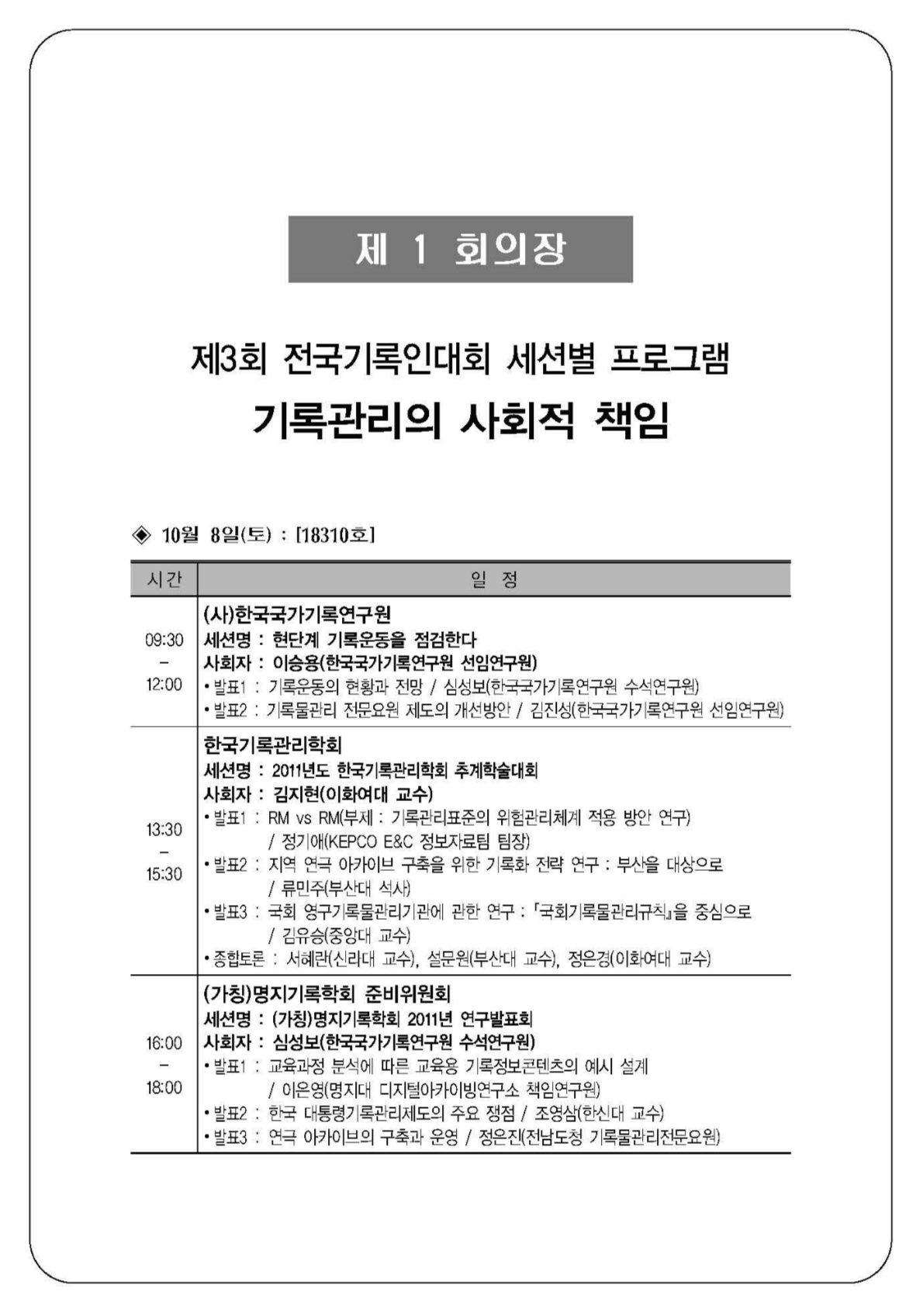 제3세션 : (가칭)명지기록학회 2011년 연구발표회