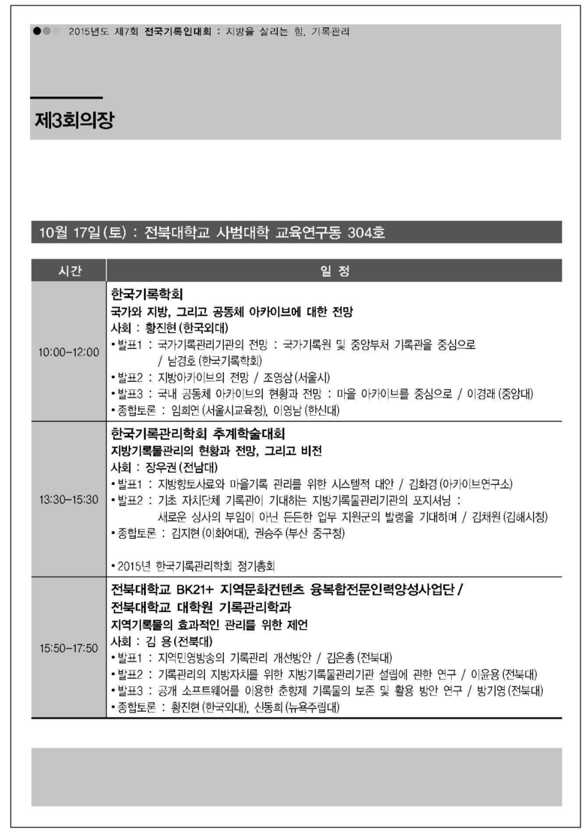 | [제3세션] 지역기록물의 효과적인 관리를 위한 제언 | <발표자료 다운로드> |