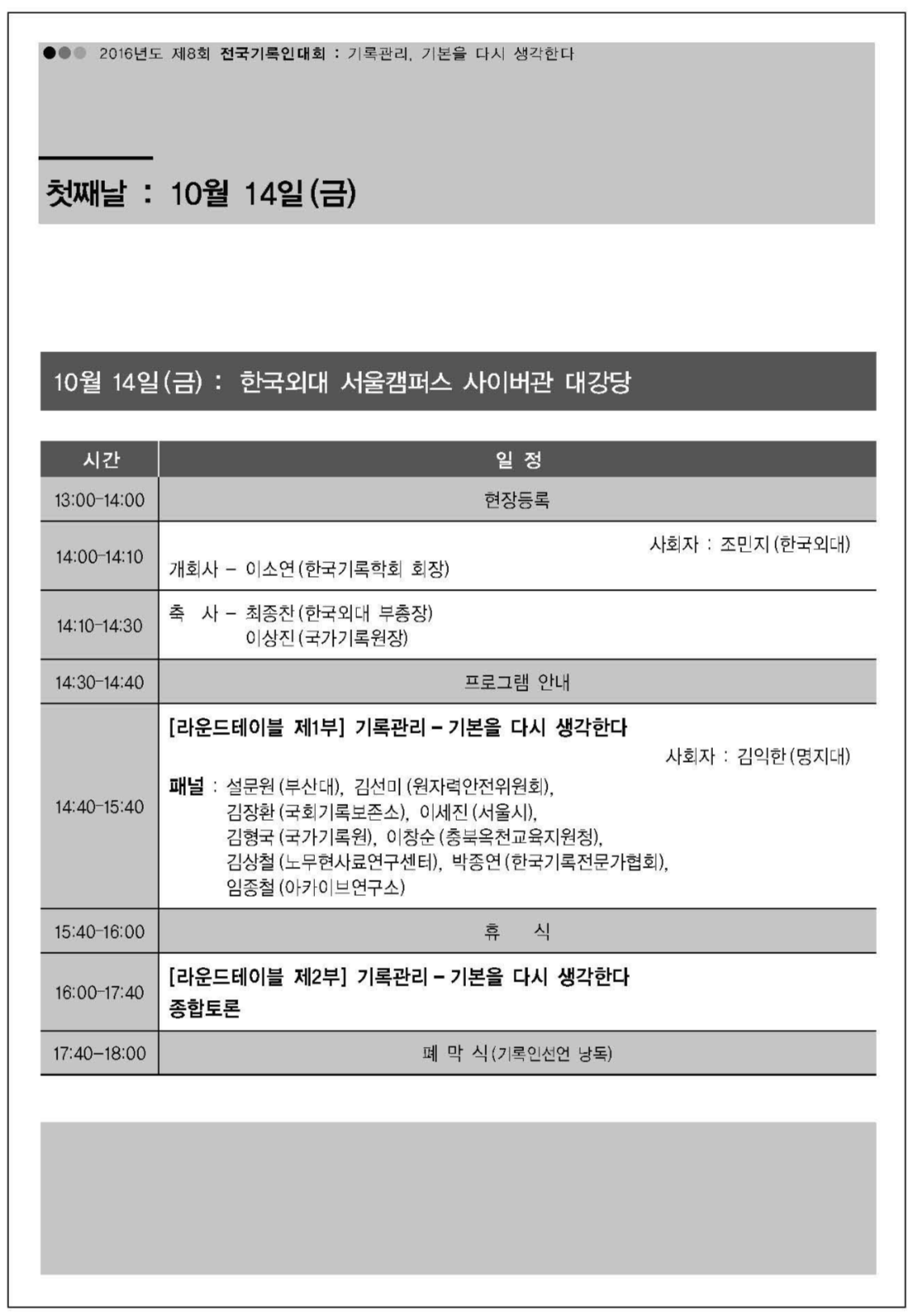 라운드 테이블 : 기록관리 - 기본을 다시 생각한다 <발표자료 다운로드>