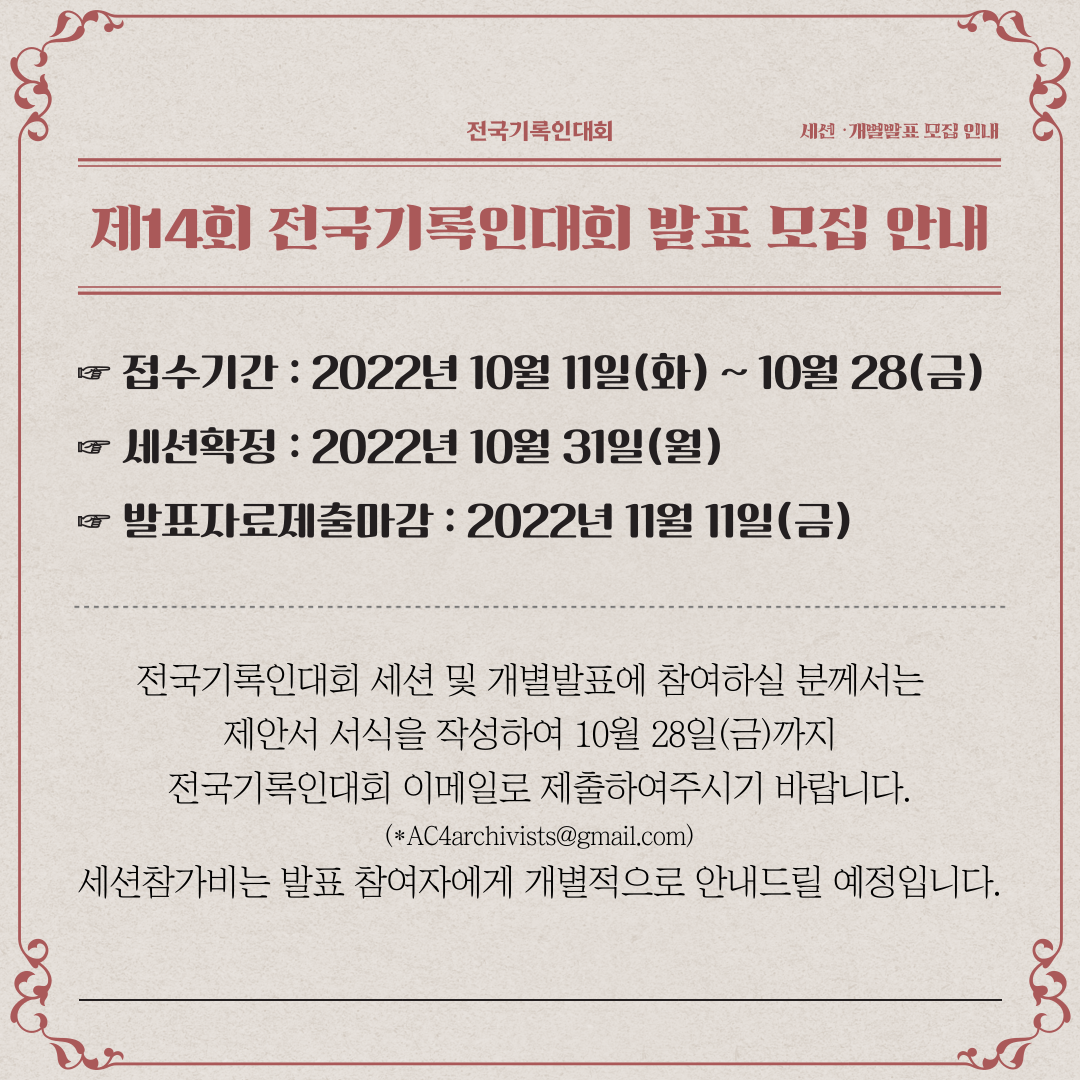 (전국기록인대회 이메일: AC4archivists@gmail.com)