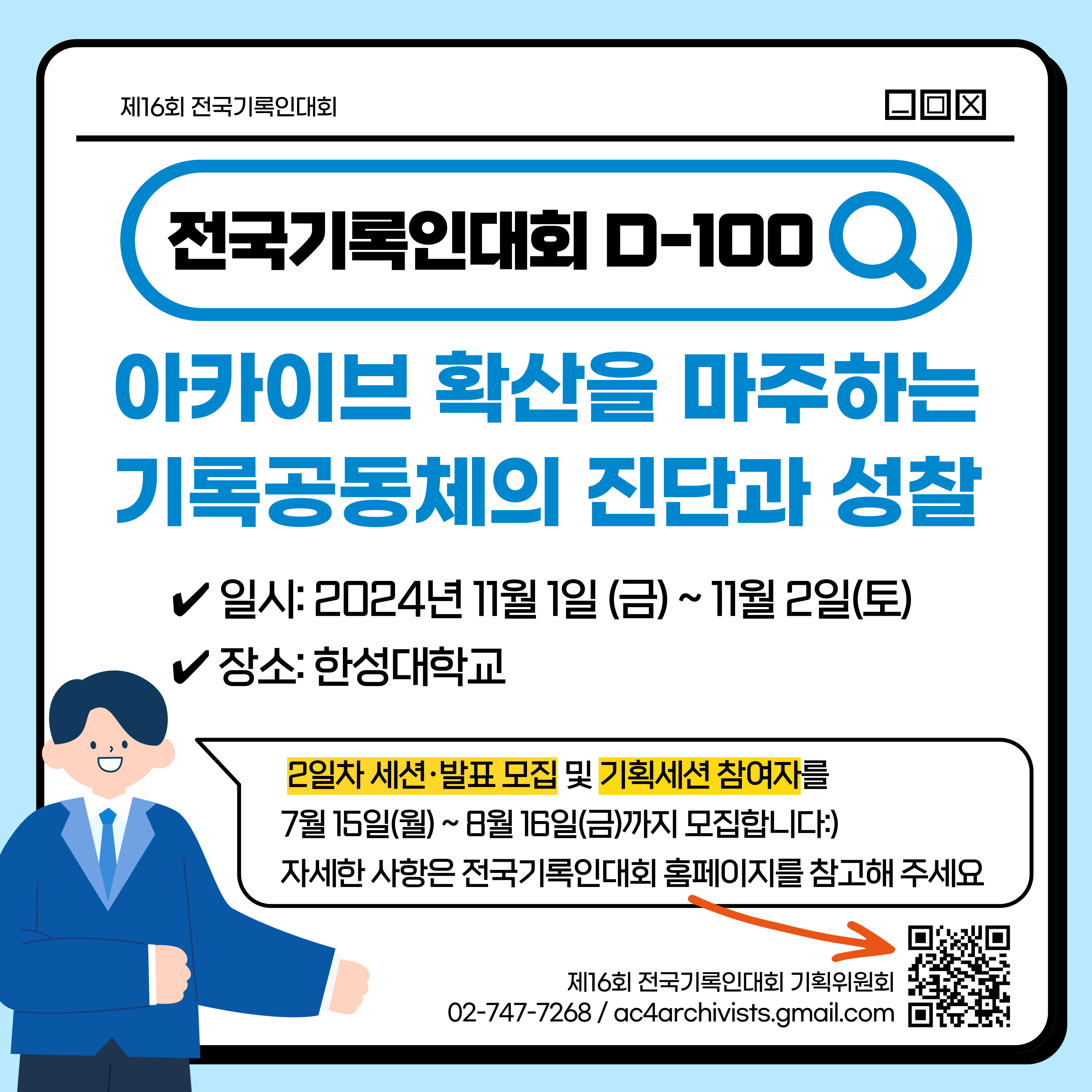제16회 전국기록인대회가 100일 앞으로 다가왔습니다!