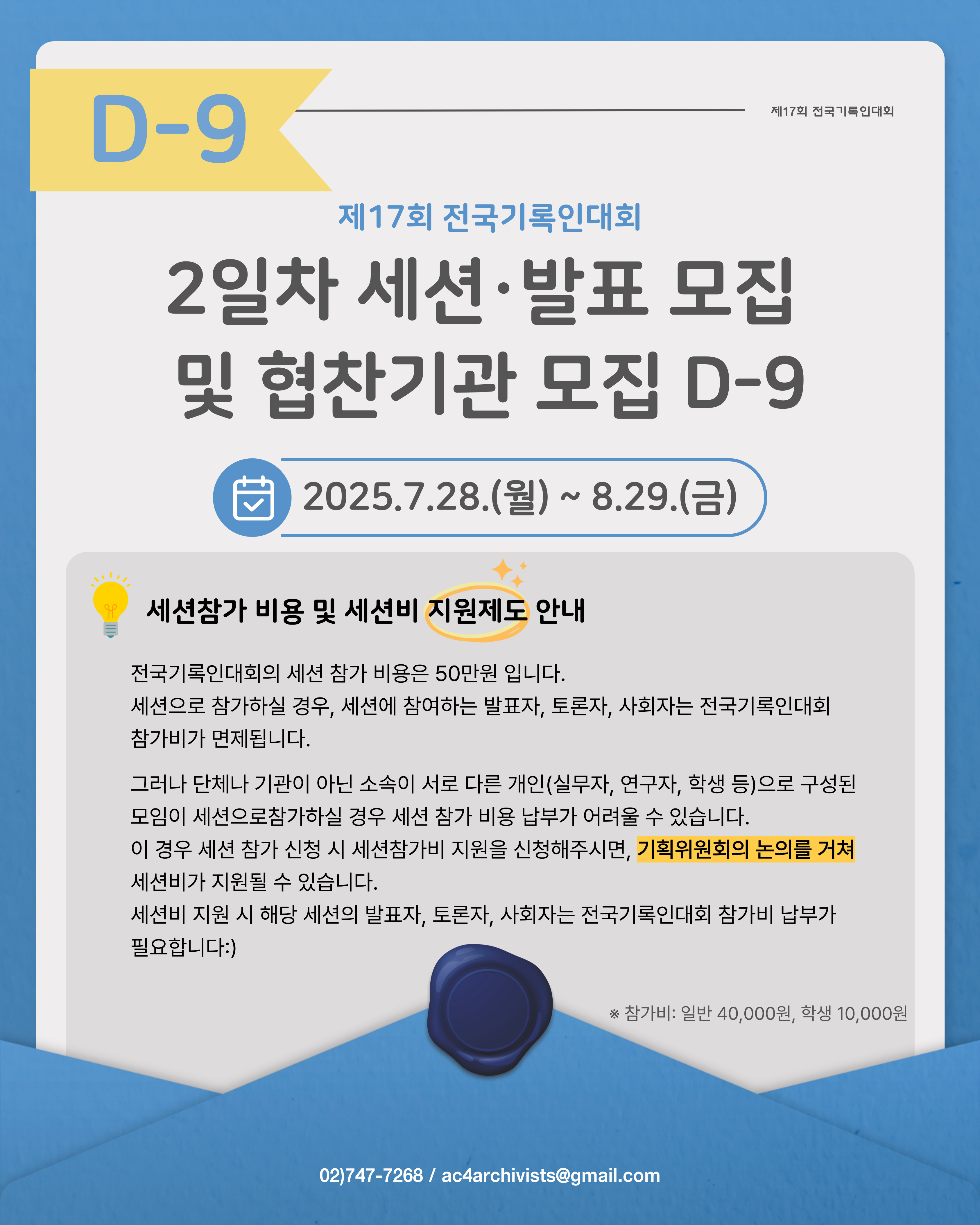 [공지] 제17회 전국기록인대회 2일차 세션·발표 모집, 협찬기관 모집 D-9